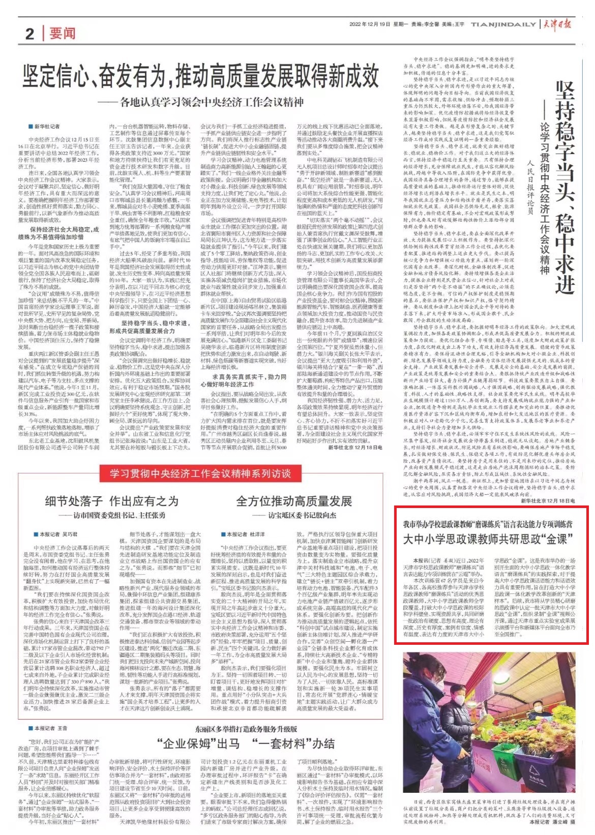 齐文以下:原报讯(记者 姜凝)今天,2022年天津市黉舍念政课教